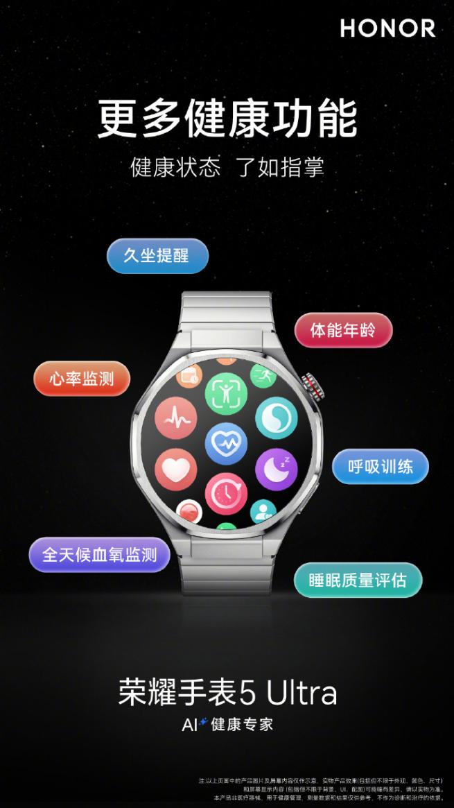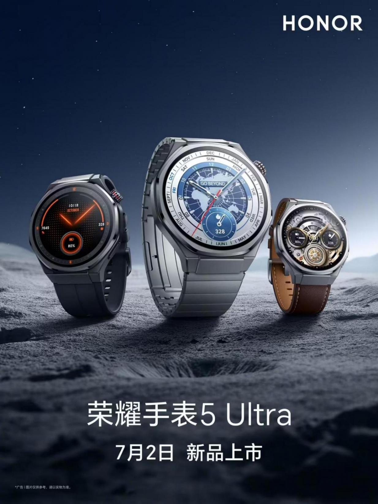 6 月 27 日消息,荣耀手表 5 Ultra 系列正式官宣,主打“AI 健康专家”,将于 7 月 2 日与荣耀 Magic V5、MagicBook Art 14、MagicPad 3、荣耀 Earbuds 开放式耳机等产品一起发布。