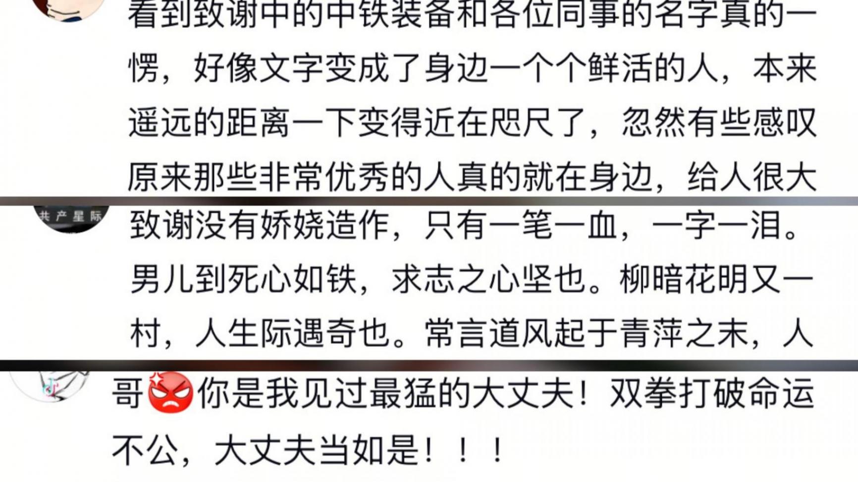 网友纷纷被这篇致谢打动、激励,评价道“一笔一血、一字一泪”、“文字好像变成了身边一个个鲜活的人”,作者也被网友们称为“最猛的大丈夫”。