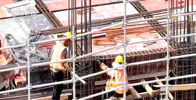 有人还在连续搬运钢筋,汗都没空擦。