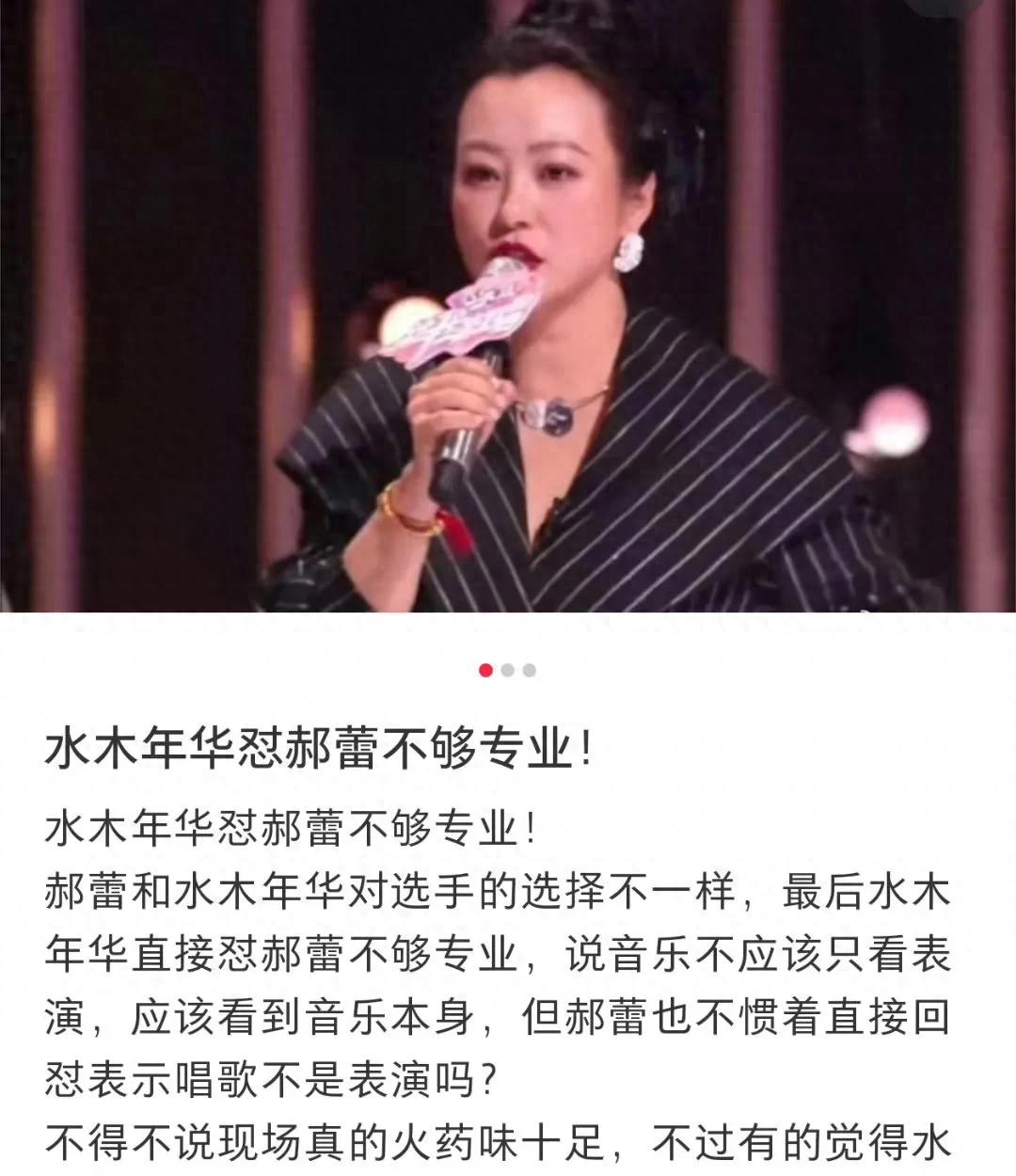 在此背景下,水木年华的回应更是火药味味十足。他们直接指出在专业的音综舞台上,不能用表演的视角去评价舞台是否专业。这话一出,郝蕾显然感到不满。郝蕾的回应毫不含糊,直接反驳道:“舞台表演难道不需要用心?”似乎是在强调表演不仅是唱功技能,更是艺术与情感的结合。