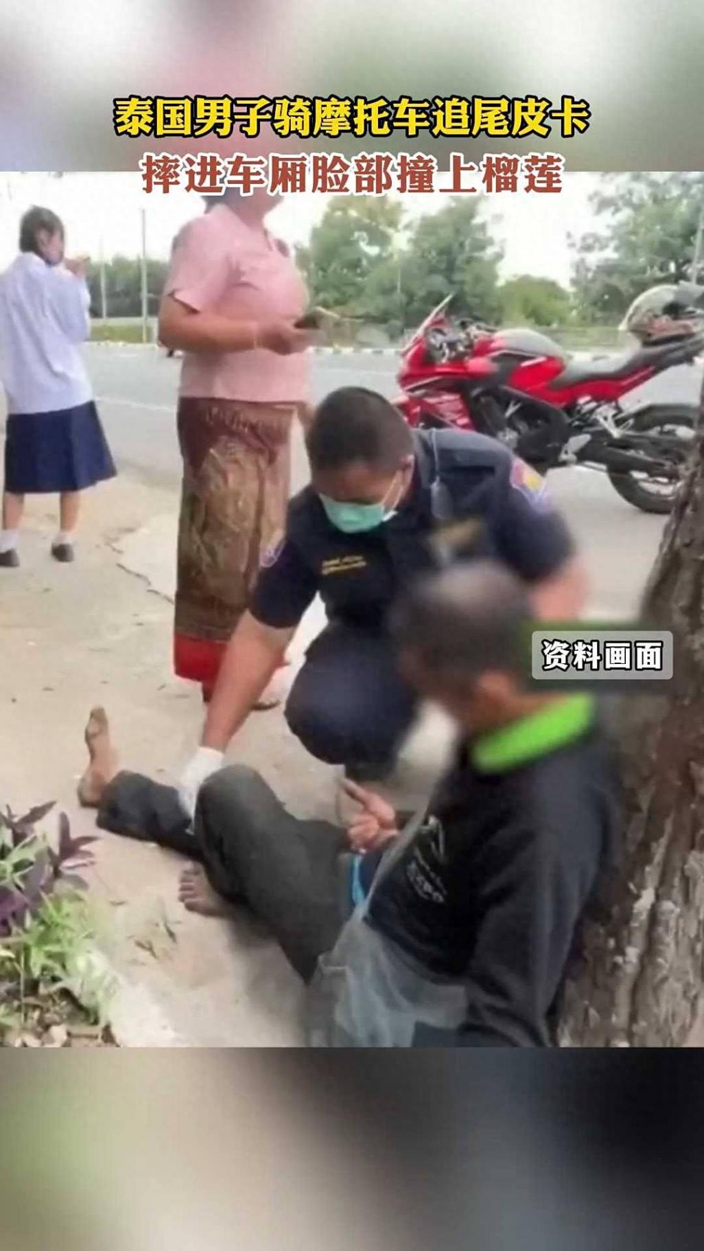 近日,泰国发生了一起让人既意外又揪心的事故。一名 48 岁男子骑摩托车回家时,不小心追尾了一辆皮卡车。巨大的冲击力把他撞飞,他直接脸朝下摔进了皮卡车的车厢里,正好撞上车厢里装着一个榴莲,男子脸上因此留下了数十处刺伤。