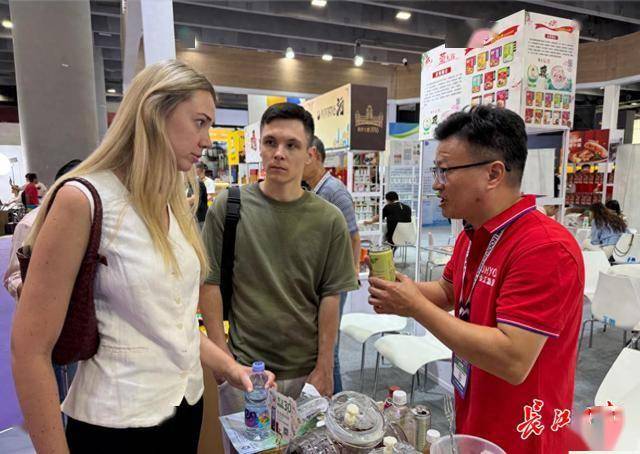 记者在现场看到,在武汉市金汇泉食品饮料有限公司展台正有俄罗斯采购商驻足询问。“我们是山姆、盒马、麦德龙等大型商超的供应商,”该公司销售经理杜少华介绍,“这款‘梅子多多’气泡水饮料在山姆就能买到同款。连续三年来广州参加中食展,希望推动武汉味道进一步拓展国际消费市场。”