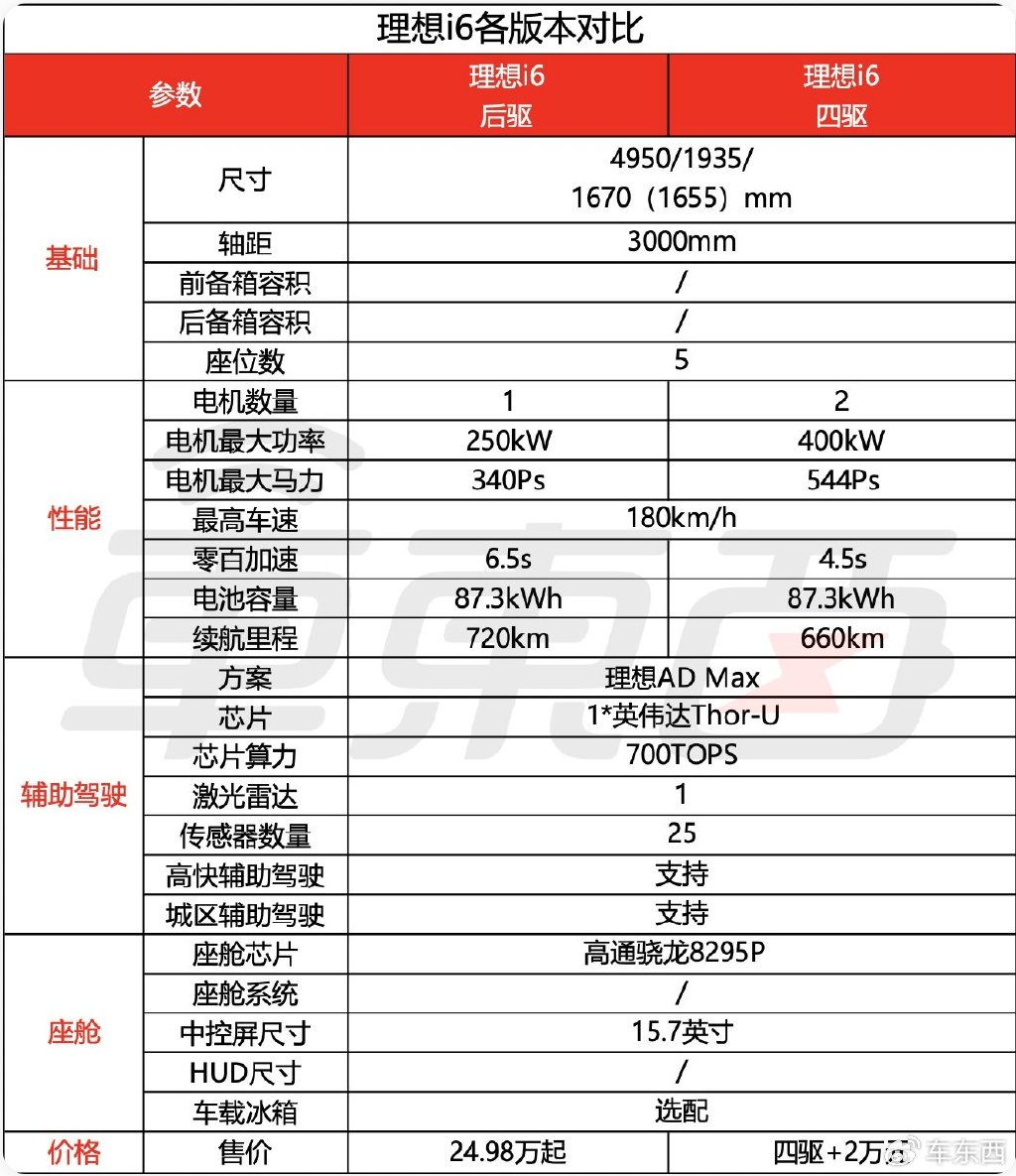 9月26日消息,就在刚刚,理想汽车CEO李想正式发布了理想今年的最后一款全新车型理想i6,新车只有一个版本,售价为24.98万元,跟的起售价格一致,做到了油电同价。