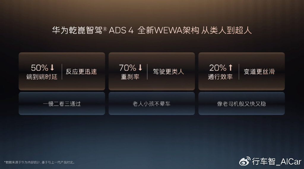 软件层面,新车搭载的华为乾崑ADS 4基于WEWA技术架构,可实现从“模仿人类”到“超越人类”的决策进化,通行效率上提升20%,重刹率降低30%,端到端时延降低50%。全维防碰撞系统CAS 4.0能够精准识别特种车辆、外卖骑手等特殊目标,并对“鬼探头”等突发场景实现微秒级识别与制动响应。