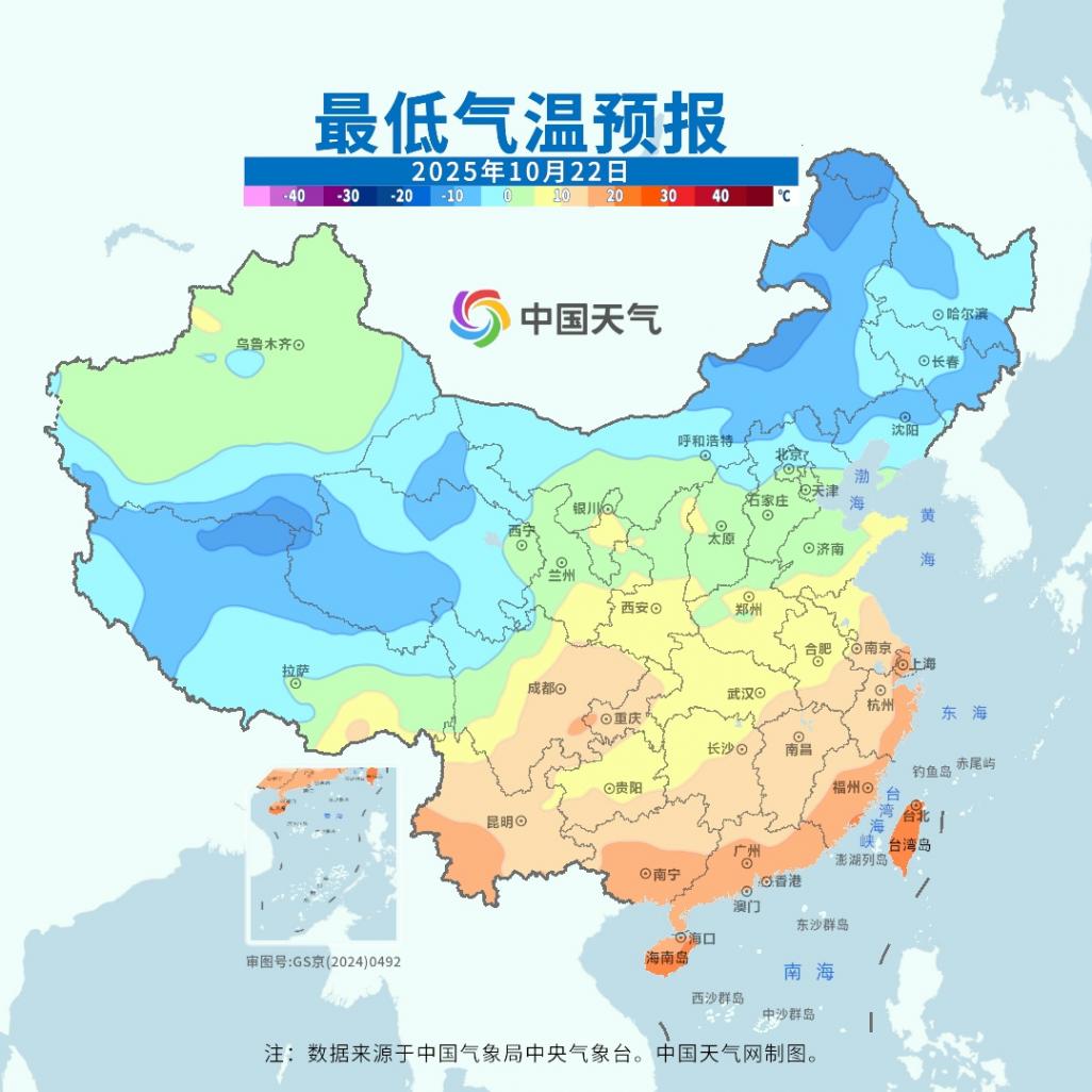 今天(22日)早晨,包括广州、南宁、海口、成都、贵阳、南昌、杭州、上海、武汉、合肥等地在内,南方多地最低气温继续刷新下半年来新低。
