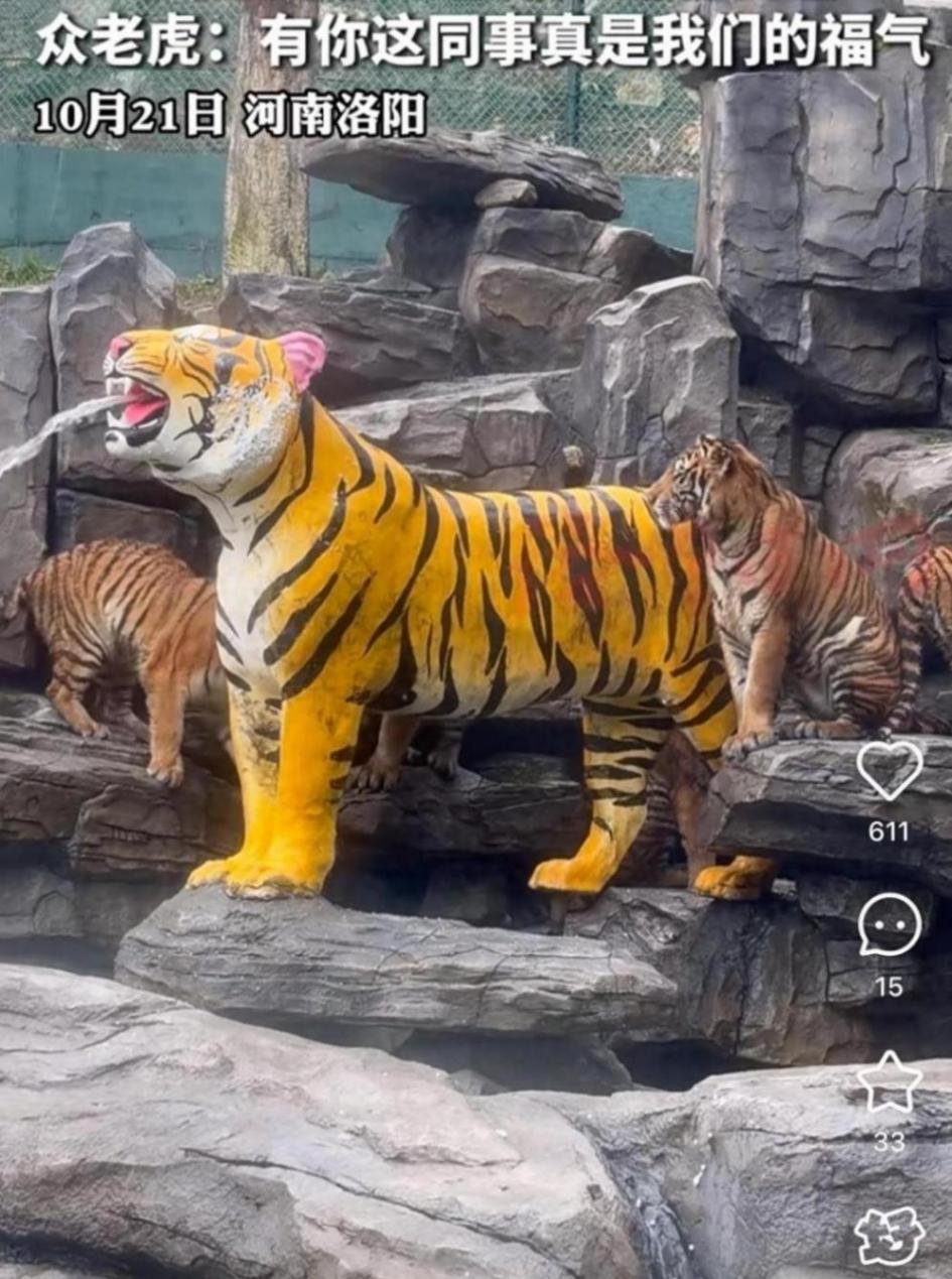 河南洛阳一家动物园因游客拍摄的“虎口瀑布”视频在网络走红。视频中,一只活老虎一动不动地衔着水管,水流从管中持续喷出,形似老虎造型的喷泉。走红后,园方解释称,视频中的老虎为亚成年虎,咬水管是它们的自然探索行为,“把水管当成磨牙玩具”。