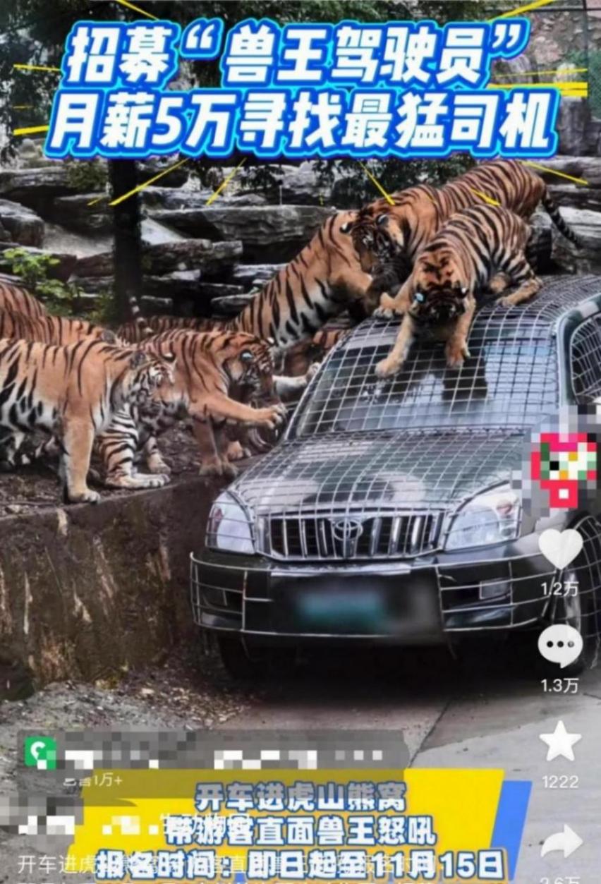 大皖新闻记者注意到,10月22日晚,该动物园在社交平台发布了一则招聘视频,称以“月薪5万”招募“兽王驾驶员”,负责驾驶车辆进入虎山、熊窝等猛兽散放区,“带游客直面兽王怒吼”。