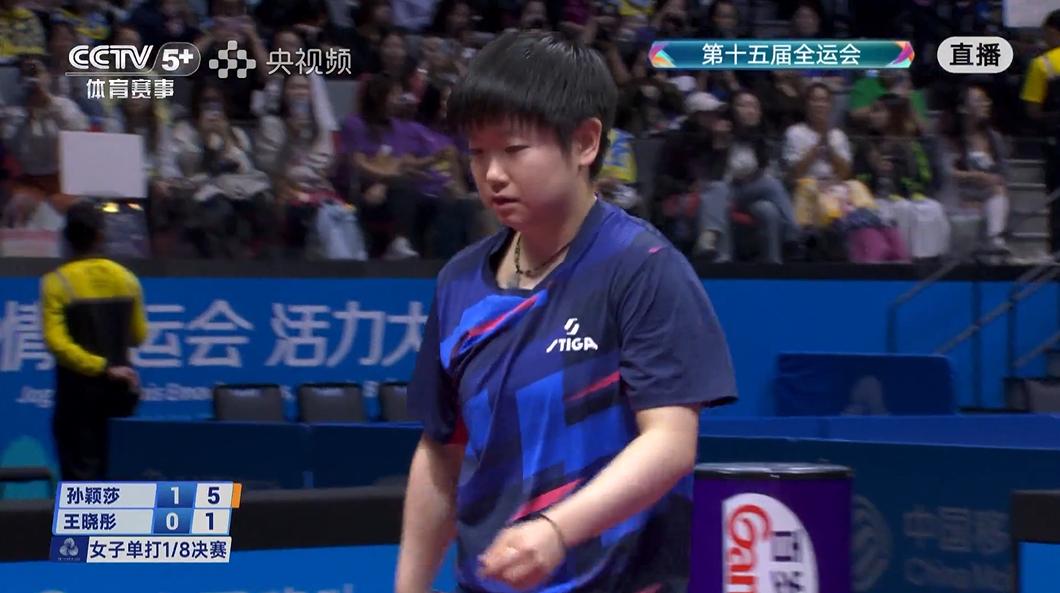 乒乓球女单1/8,河北队的孙颖莎vs山东队的王晓彤,孙颖莎开场状态出色,前两局一度领先,第三局双方一度难解难分,孙颖莎咬住关键分,11比7拿下第三局。最终孙颖莎4比1战胜王晓彤,晋级女单八强,孙颖莎下轮对手将是上海队陈熠和辽宁队刘斐之间的胜者