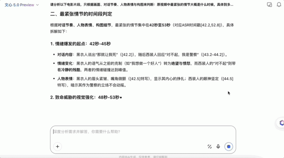 在官方展示中,上传一个电影片段,它立马就能分析出最紧张的情节,具体到第几秒到第几秒的那种。