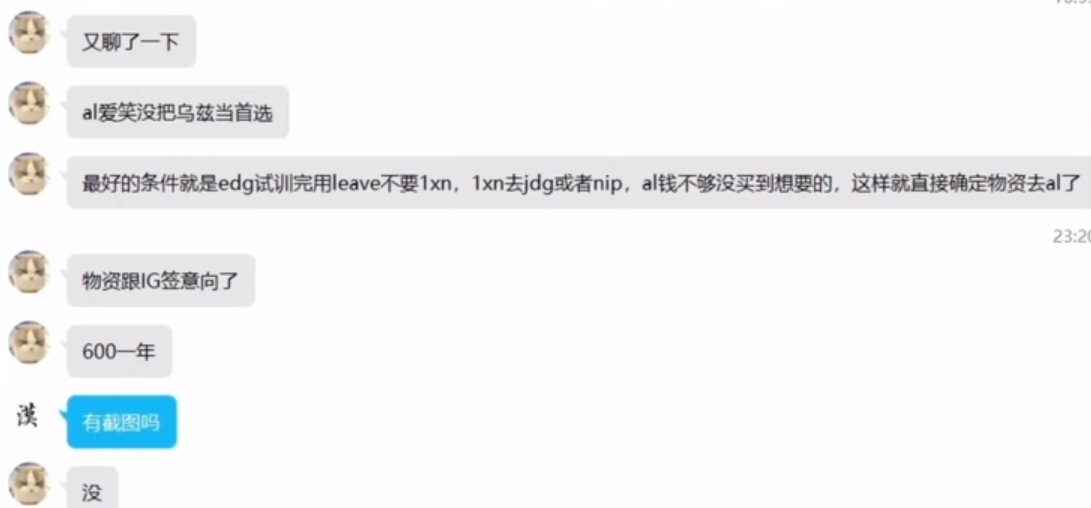 就在人们纷纷猜测,Uzi可能正在进行复出训练的时候,11月15日晚上,一位Uzi铁粉竟然直接确认了Uzi明年将复出并加盟IG的消息,甚至还晒出了自己跟业内人士的聊天记录!聊天记录显示,Uzi目前已跟IG签署了意向合同,年薪600万,并透露Uzi原本有机会加盟AL,但AL经理爱笑却没有将Uzi视为首选目标,于是Uzi便跟IG签约了(Uzi加盟EDG的时候,就是这位知情人士率先爆料出来的)。