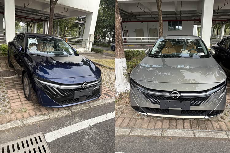 外观方面,从流出的实车图来看,第十五代轩逸变化最大的,就是这张脸。它用上了一个尺寸更大的倒梯形熏黑进气格栅,里面点缀着扩散开的“V”形元素,看起来挺有动感。最引人注目的是,格栅两侧延伸出黑色的饰条,一直插进大灯下方,整个前脸瞬间就有了种“獠牙式”的进攻性,视觉冲击力很强。