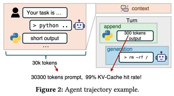 在多轮互动的智能体场景中,上下文信息会随轮次迅速累积,导致其呈现出 「长上下文、短追加」 的特征。研究指出,这类负载的 KV-Cache 命中率通常高于 95%。这意味着系统性能的决定性因素已不再是纯粹的计算能力,而是从存储中加载 KV-Cache 的效率。